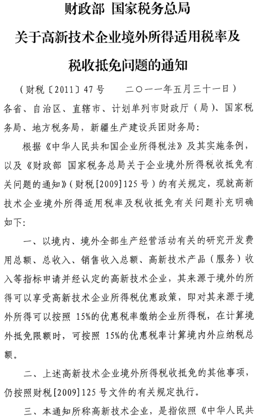 境外所得适用税率及税收抵免问题通知的